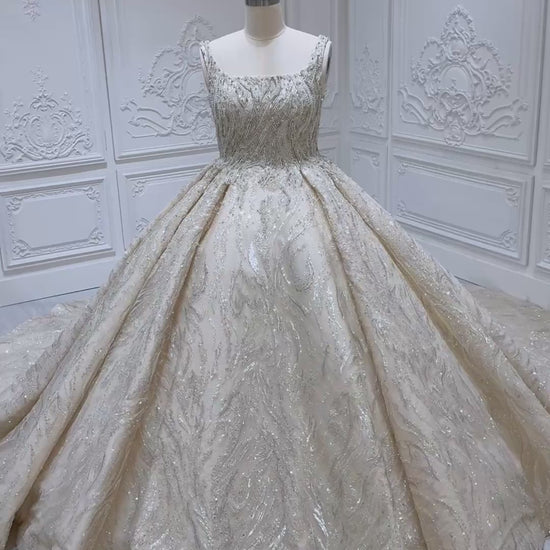Custom-made luxury beading square neck sparkling princess ballgown royal wedding dress